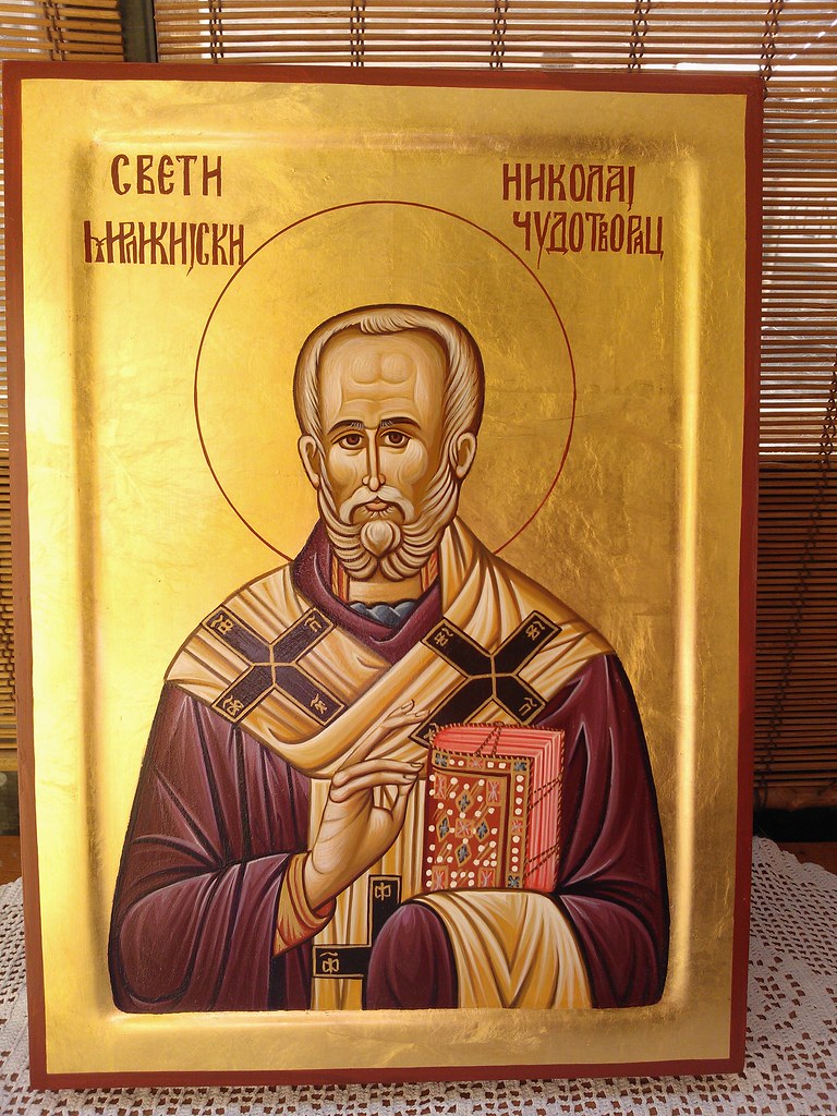 U šali se kaže da je slave svi srbi, jer jedni slave, a drugi dolaze kao gosti.. Ikona je pravljena kombinovanom tehnikom po uzoru na srednjovekovne ikone koje su bile okovane, filigranski obrađenim metalnom, osim lica.metal je oplemenjen pozlatom 24 karata.ikona je zastakljena, i isporučuje se sa poklon kutijom. Kombinovana po uzoru na srednjovekovne ikone; Beograd karaburma, beograd grad, rs. Sveti nikola je posna slava.